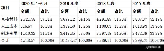 成本当中,直接材料大概占一半多,人工成本和制造费用分别约占总成本的13%和33%。