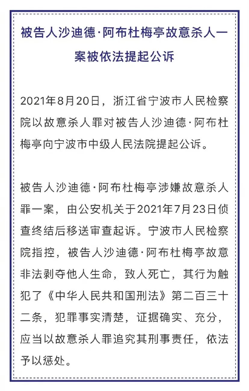 终于,在今天,宁波市人民检察院以故意杀人罪对这名黑人垃圾提起了公诉,正义终于来了,只是像很多时候一样,它姗姗来迟。
