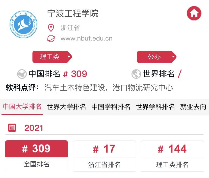 宁波工程学院,软科大学排名309,在浙江省排17。