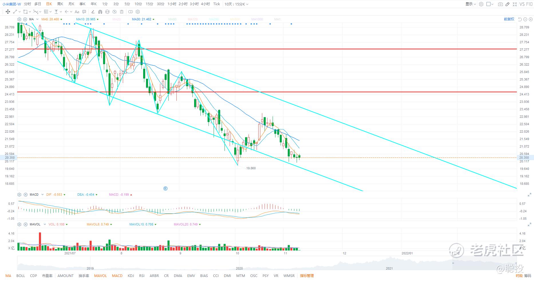 $小米集团-W(01810)$ 这个走势有点让人无奈,竟然还在贴着下降通道徘徊,也难怪很多股友天天吐槽他了。不过越是这种情况越要有耐心,机会是留给有准备的人的,耐得住寂寞才等得来收获。