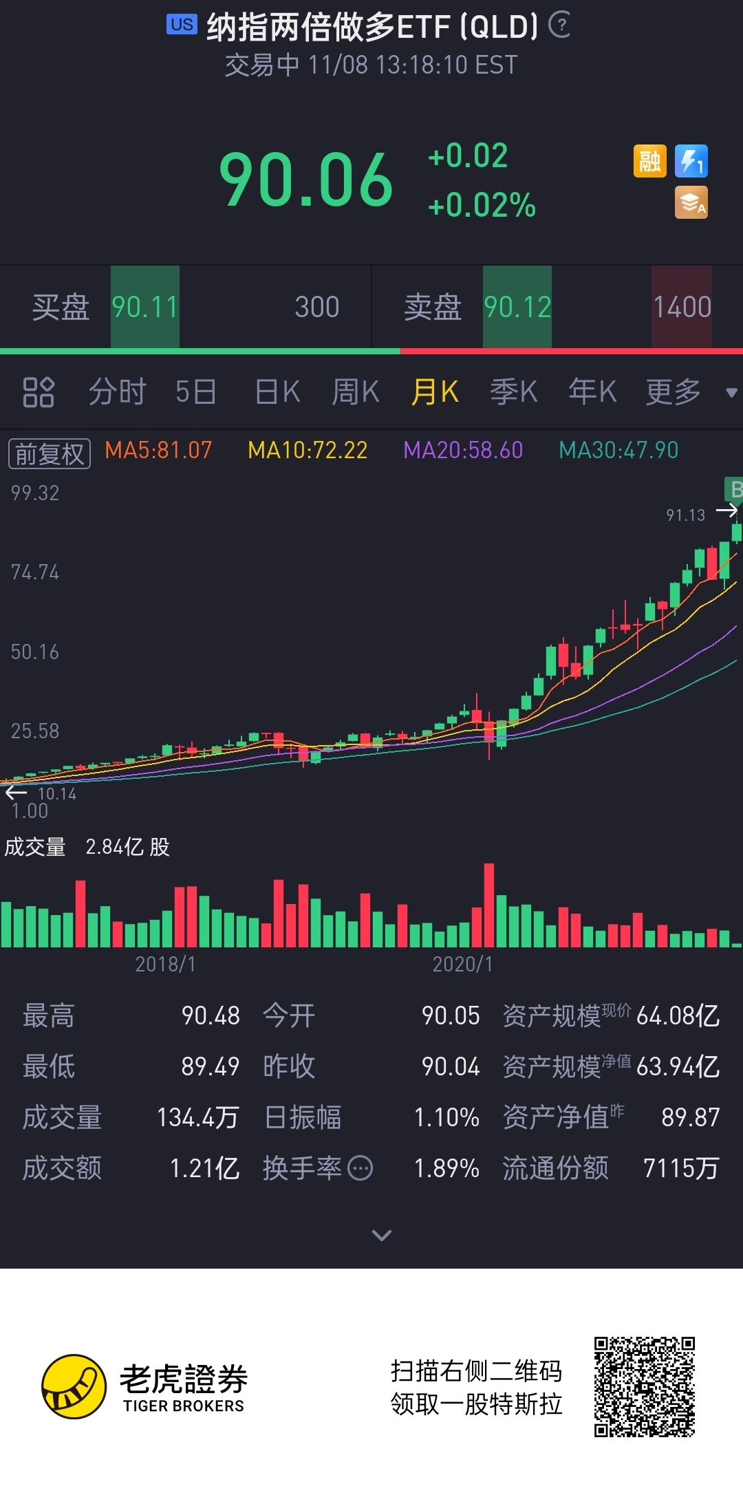 $纳指两倍做多ETF(QLD)$