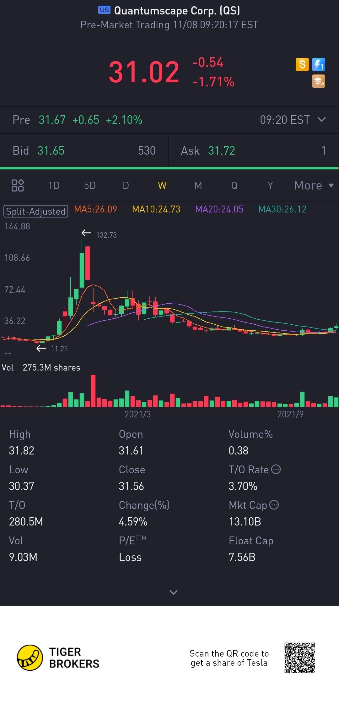 $Quantumscape Corp.(QS)$tis stock has been down and sideway for some time, may run in comjng weeks.