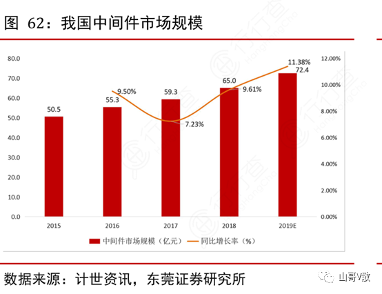 2019行业规模72亿,20/21/22/23/24/25预计15%增长分别为:83/95/109/126/145
