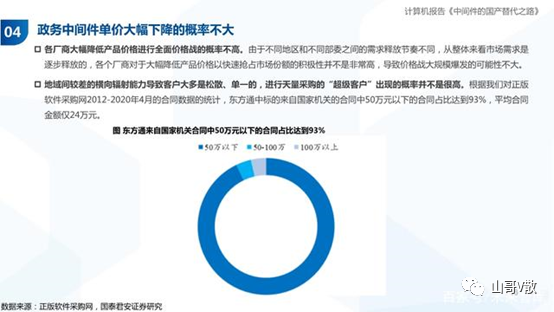政务市场的特点有利于国产厂商“扬长避短”,从而实现对国外厂商的替代。如前所述,政府市场往往是比较松散的,除了某些部委具备相对较强的纵向辐射能力以外,地域间横向辐射的能力相对比较差,即每个地区在厂商选择上是相对独立的。在这种情况下,厂商在不同地区的客户获取能力与服务响应能力显得非常重要,国产厂商的优势将得到充分发挥。