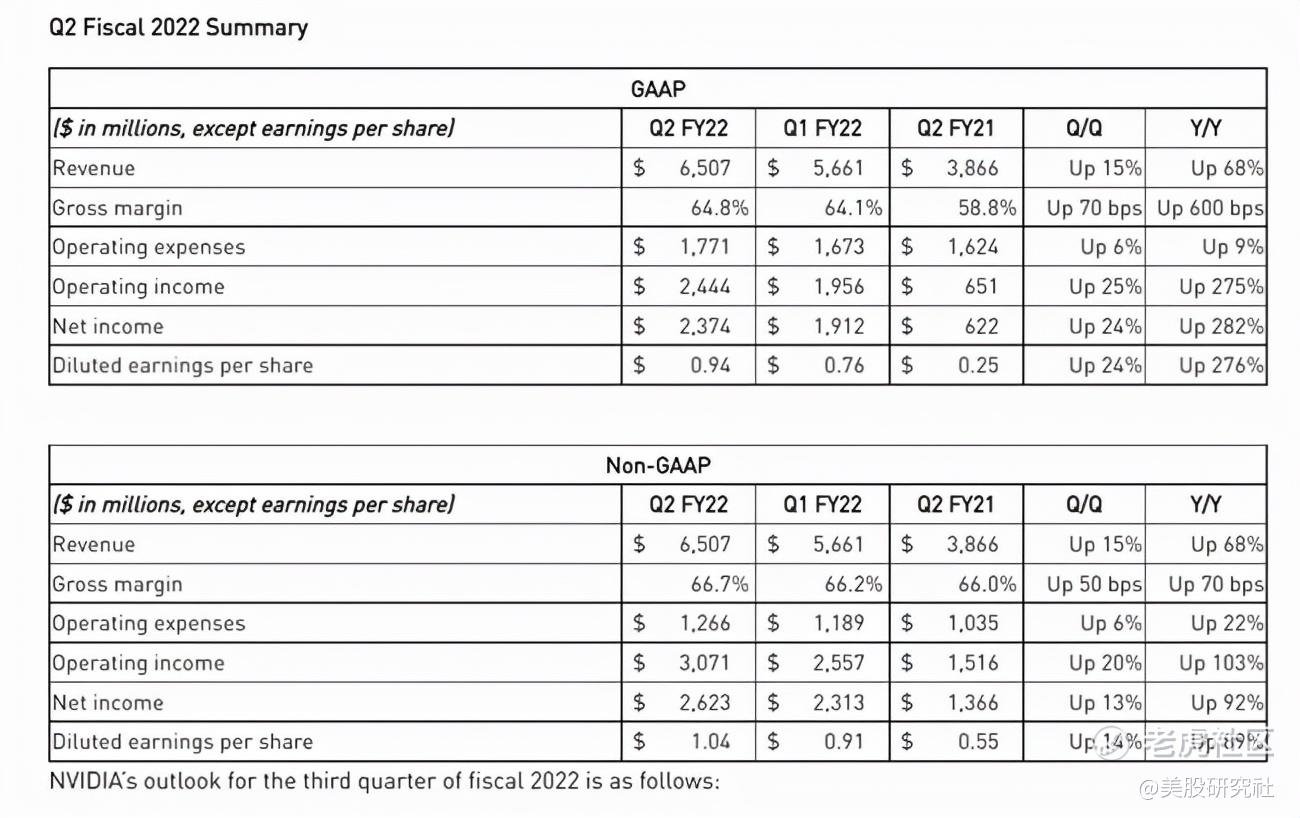 从核心数据来看,二财季英伟达营收为65.07亿美元,与上年同期的38.66亿美元相比增长68%,与上一财季的56.61亿美元相比增长15%;净利润为23.74亿美元,与上年同期的6.22亿美元相比增长282%,与上一财季的19.12亿美元相比增长24%;不按照美国通用会计准则的净利润为26.23亿美元,与上年同期的13.66亿美元相比增长92%,与上一财季的23.13亿美元相比增长13%。