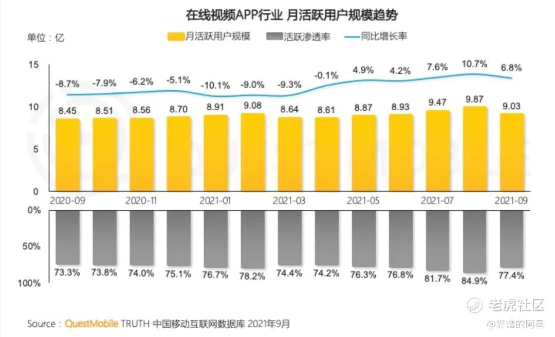 (在线视频APP流量月活用户在8.45亿至9.08亿,网民渗透率超过70%,剩下的用户实际在其他终端可覆盖)