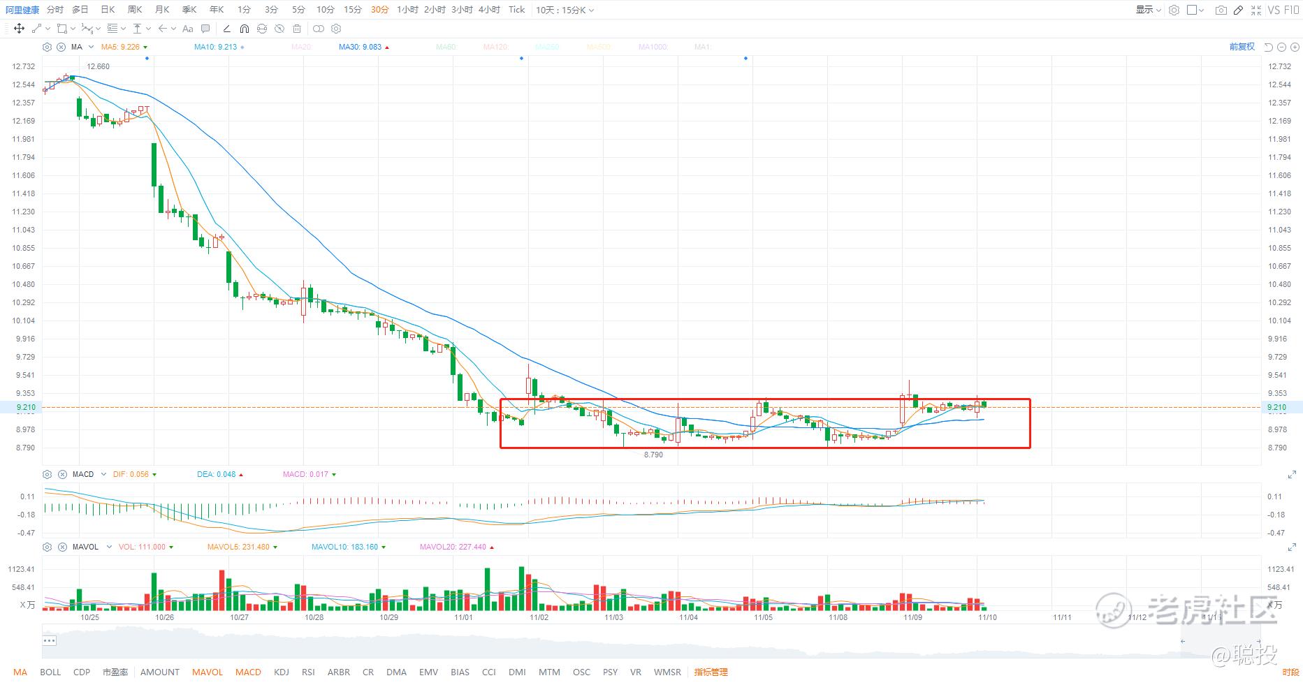 阿里健康30分钟K线图