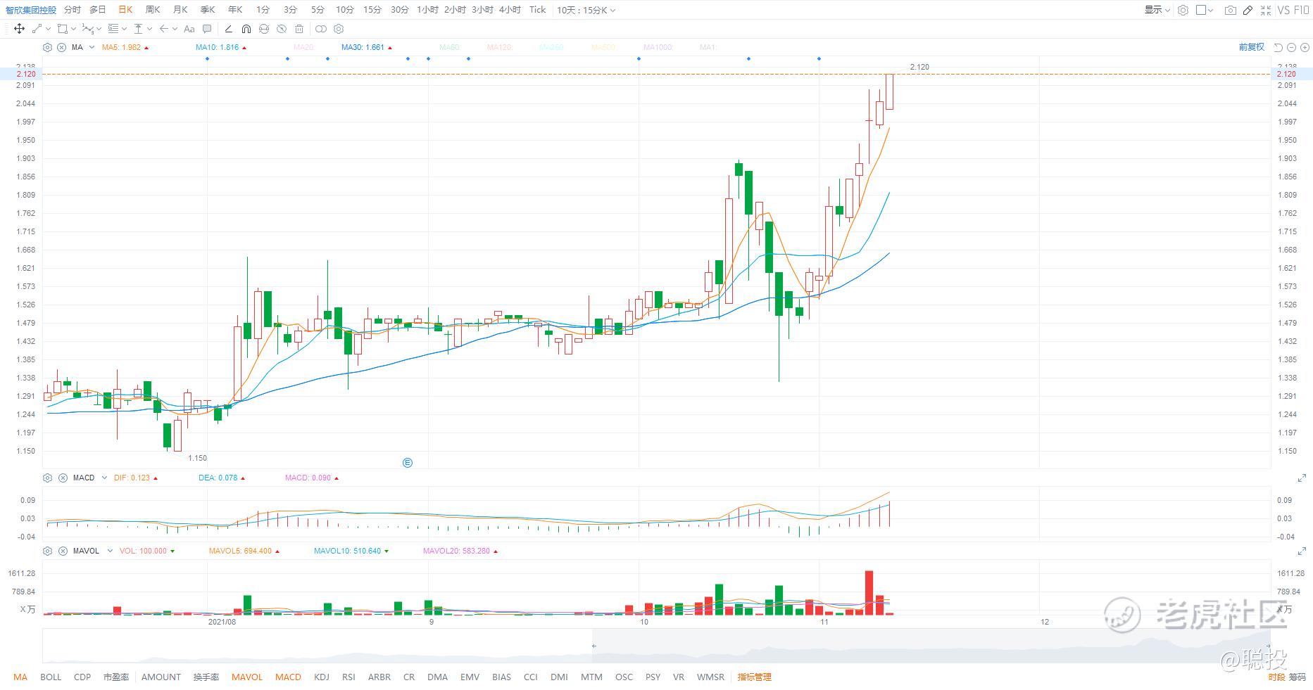 2、智欣集团控股(中线):这个没什么可说的,阿聪成本2.06,继续耐心持有。