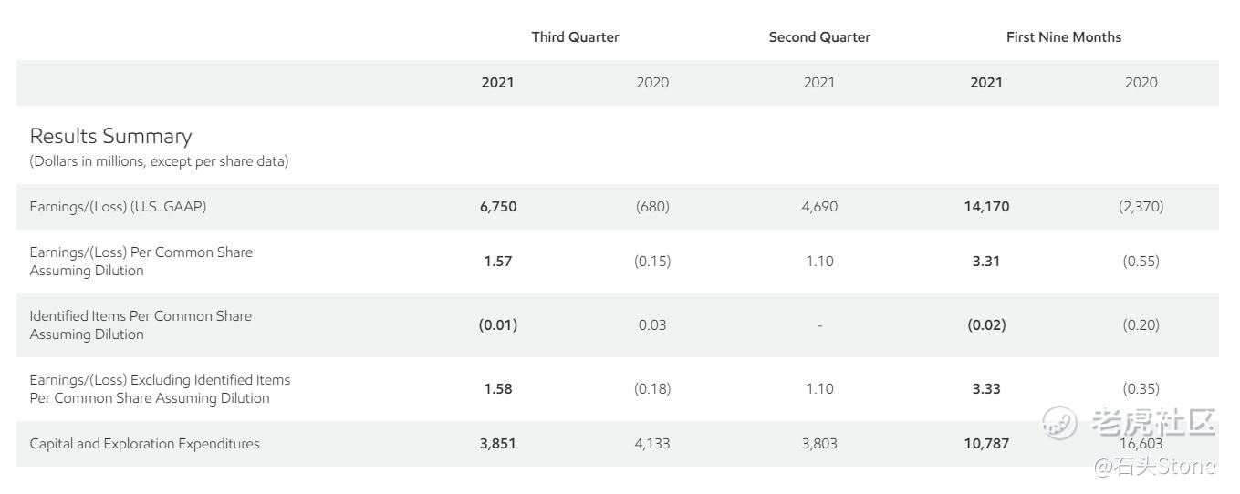 好了,我们来看看2021Q3季度埃克森美孚的财报,希望可以通过对财报数据上的分析,来推演出未来股价的走势,以及目前人类对于传统能源的依赖,是否可以短期就过渡到新能源或者是清洁能源上?以及更重要的问题,冬季即将来临,我们是否会面对冬季的能源危机呢?