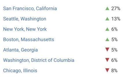 不出所料,硅谷看似是最赚钱的地方。但如果考虑到购买力的问题,有些看起来令人艳羡的数字在考虑到该地区的生活成本之后也许也不足为奇。