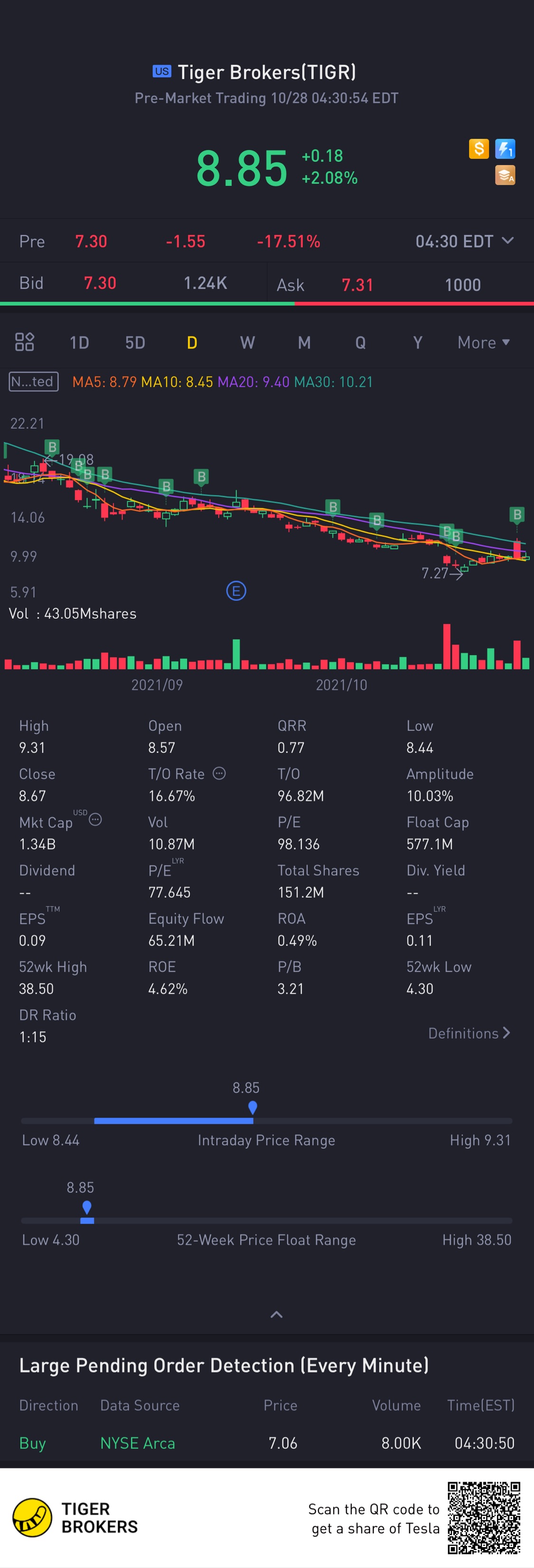 $Tiger Brokers(TIGR)$Aiya chill la. HK license is same as China license la. At most they work with regulations and this will go up again.