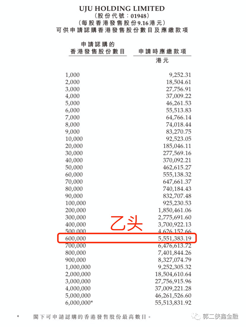 香港公开发售1200万股,每手1000股,合计1.2万手,在不启动回拨的情况下,甲乙组各获配6000手。