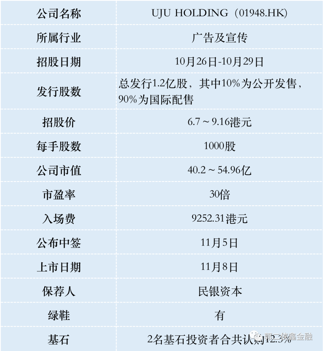 优矩互动目前孖展2倍,预计不会启动回拨。按照1.5万人申购算,预估一手中签率40%,申购30手稳中一手。