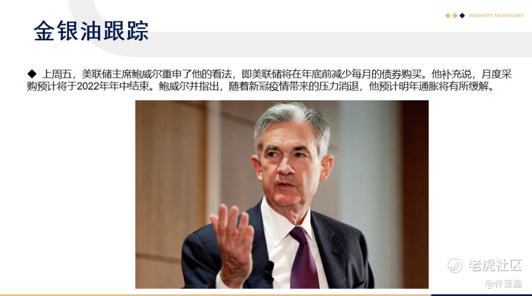 实际上,许多人会认为,美元指数的走高,是与上周五美联储主席鲍威尔发表的“鹰派”言论有关,即鲍威尔的置评强化了市场对于美联储未来加速缩债的预期。