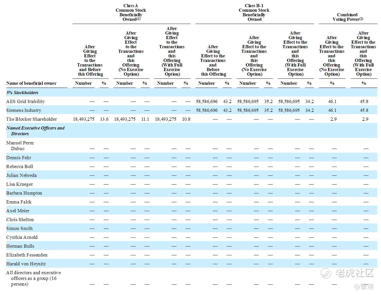 IPO后,AES Grid Stability和Siemens Industry分别持有45.8%的投票权,The Blocker Shareholder有2.9%的投票权。