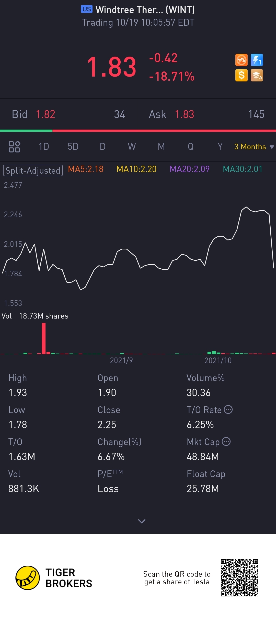 $Windtree Therapeutics, Inc.(WINT)$suddenly fall today 🤔😐