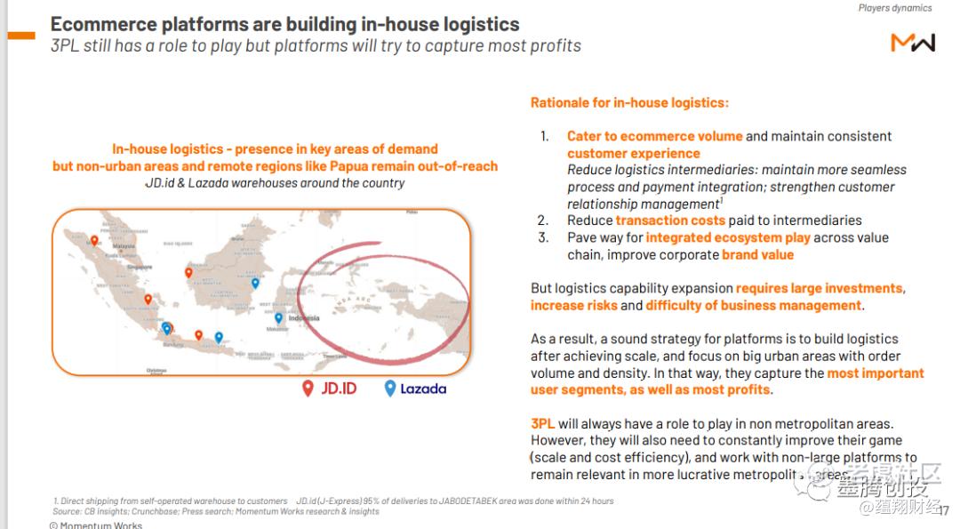 在东南亚电商过去两年快速、而且整体客单价低的大环境下,物流也自然成了增长最快的行业。大的电商平台作为行业的主要节点,自然不会放弃对物流的把控: