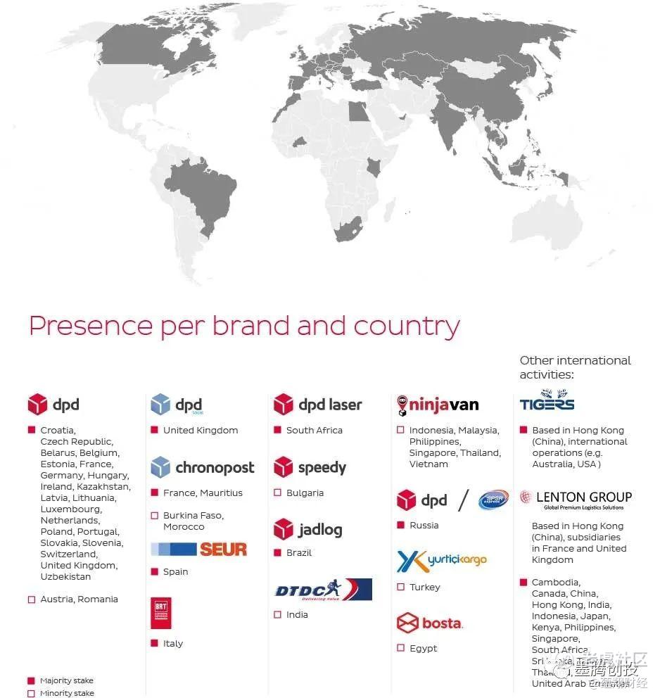 而GeoPost也以子公司DPDGroup的名义在全球发展快递业务,目前触角还是挺广的: