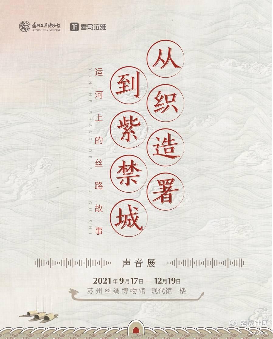 9月22日晚,第三届大运河文化旅游博览会在苏州启幕,喜马拉雅联合苏州丝绸博物馆打造了“从织造署到紫禁城——运河上的丝路故事声音展”。该展览开放时间从2021年9月17日持续至12月19日。展览以丝绸文化与大运河的故事为切入点,分为“织机声声织造署”、“三横四直姑苏城”、“水上丝路大运河”三大篇章,用声音创新逛展模式,展现大运河与丝绸文化的故事与内涵。