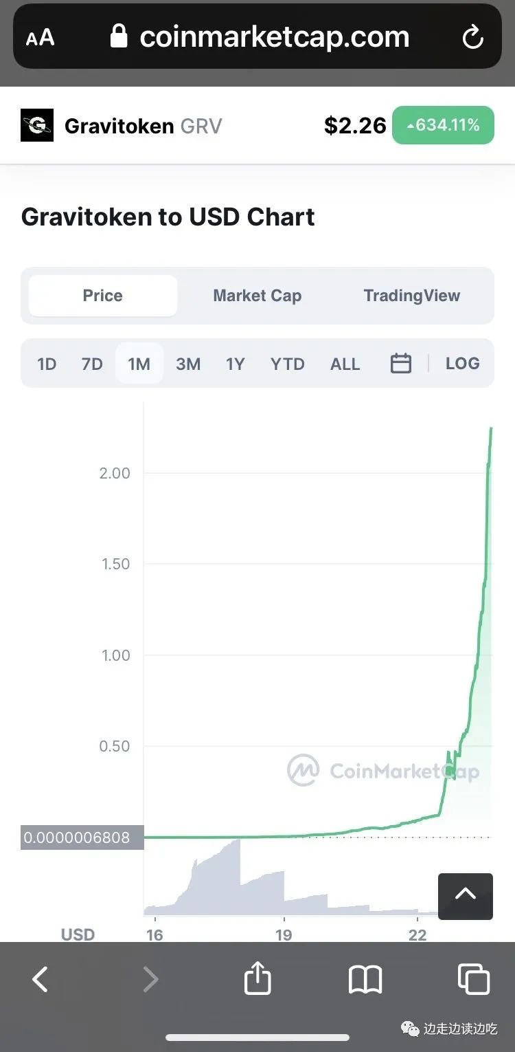 2021年9月23日: 号称反地心引力的地心引力币GRV, 上线不到14天,今天日涨幅达800%以上,引起正反两方的强烈争议。