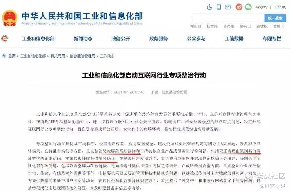 前不久,工信部召开行政指导会,要求包括腾讯、阿里在内的互联网企业,停止“屏蔽网址链接”行为。