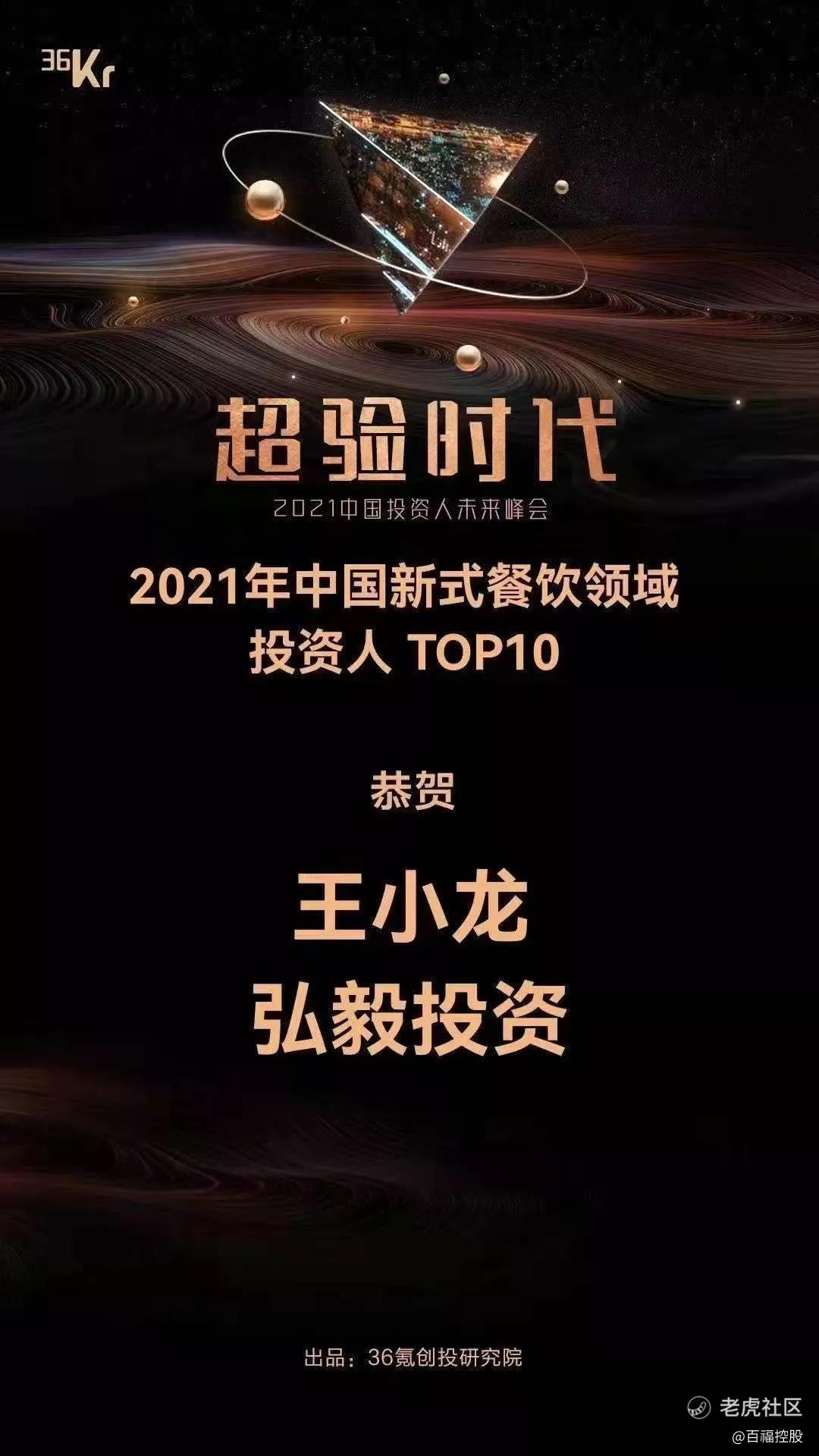 值得注意的是,此前,和合谷、权金城还荣获了由中国烹饪协会颁发的“2021年北京餐饮百强企业”的荣誉称号。而近日,百福控股CEO王小龙也荣获36氪创投研究院评选的“2021中国新式餐饮领域投资人TOP10”。