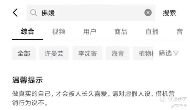 如今不管在抖音还是小红书,搜索相关关键词均会弹出勿立“虚假人设”的提示,页面显示“做真实的自己,才会被人长久喜爱。请对虚假人设、借机营销行为说不”。