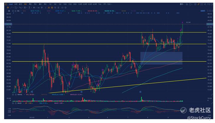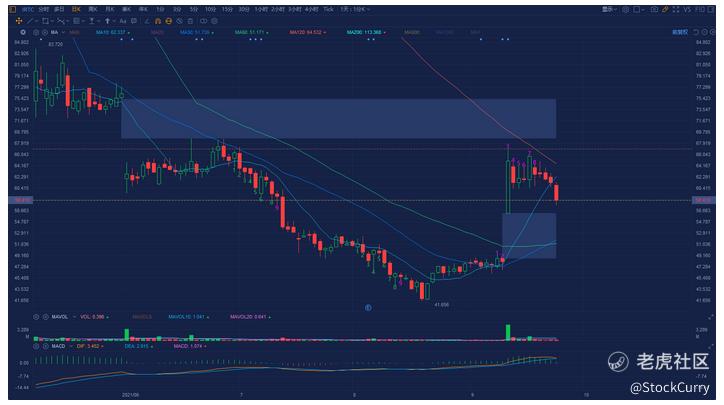 这支股票可以说是老朋友了,在这支股票上赚了不少。从走势上来看,在7月财报超预期之后就开始了慢慢的横盘之路,股价在69.8附近试了三次始终没有跌破,在上周五更是突破了之前的最高点,这说明这支股票行情在即,最好的上车进机就是等它回踩完确认之后。