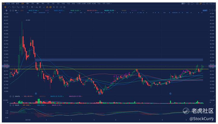 这支股票真是太强了,周四创了新高。从图形我们能看到在很短的时候间,大概两周左右迅速的完成了一个W洗盘,周五突破前高创了新高说明又要开启一波涨势,周五的回调就是非常好的回踩时间,如果再次突破将是非常好的出手机会。到价提醒已经设好,这支股票下周我会密切关注 。