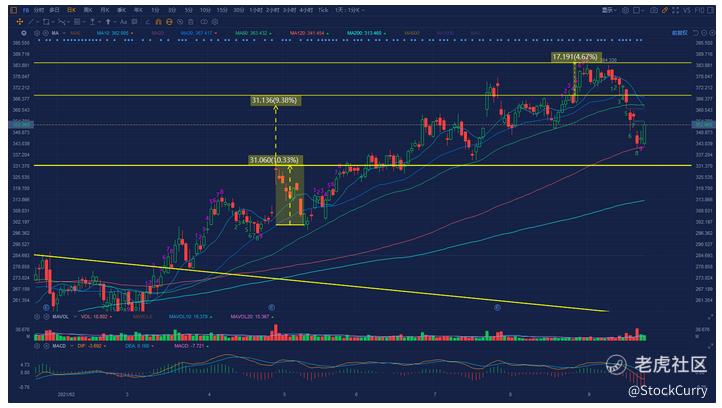 脸书这支股票从哪说起呢,我觉的FAANGM这几支股票做长线稳稳的,一旦大幅下跌就是加仓机会,由其是到了120天均线和200天均线,这次是跌到了120天均线,上周四9/23我有提到过建仓机会来了,周五果然涨了2%。