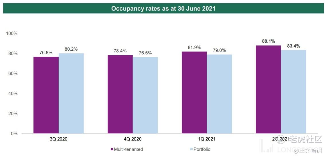 从出租率的角度来看,当前公司平均的 18 个产业出租率为 83.4%,该数值是根据公司的净可出租面积(“NLA”)作为计算,若是计算其中 12 个多租户型的产业的话,其出租率则是 88.1%。无论如何,这对比 胜宝工业信托 在 01/07/2020 到 31/12/2020 的 76.5% 出租率已经改善了许多,该产托的总租户数为 148 个。