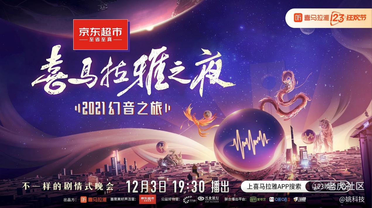 《喜马拉雅之夜·2021幻音之旅》是音频内容平台喜马拉雅在今年123狂欢节期间打造的不一样的剧情式晚会,播出时间为12月3日19:30,播出平台为喜马拉雅、爱奇艺、咪咕、斗鱼。