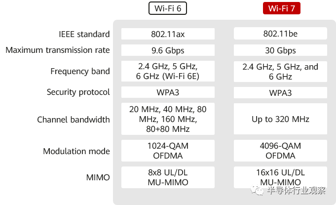 Wi-Fi 7基于Wi-Fi 6标准,引入了多项新技术。下面比较 Wi-Fi 6 和 Wi-Fi 7。