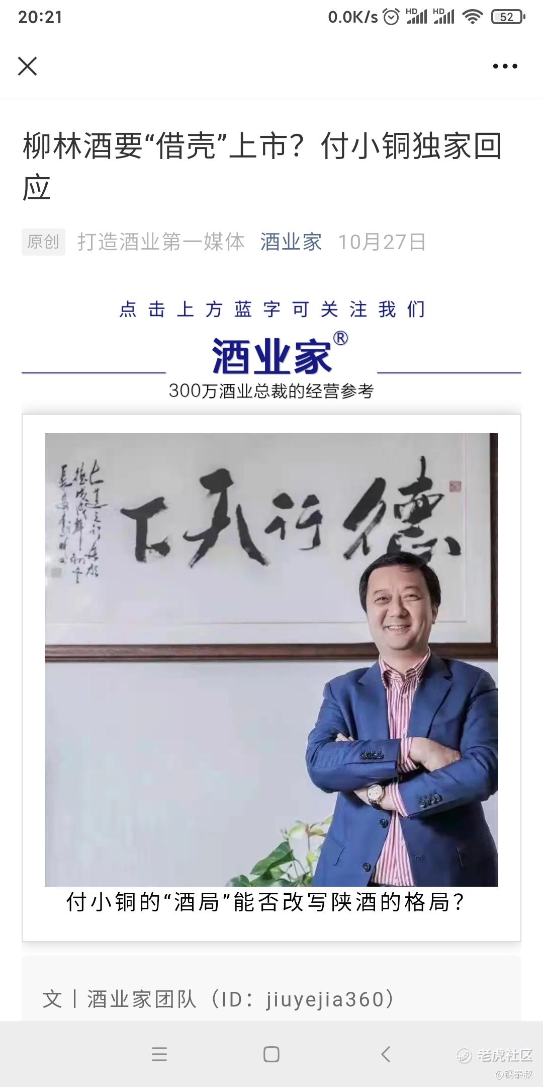 $ST中天(600856)$对于“借壳”传闻,付小铜独家回应酒业家:“入主ST中天是针对能源产业的全新的规划,而对于柳林酒业的意义还在预期之中。鉴于ST中天目前的经营状态,实现扭亏为盈是首要一步,其次才是酒业板块的延伸。”