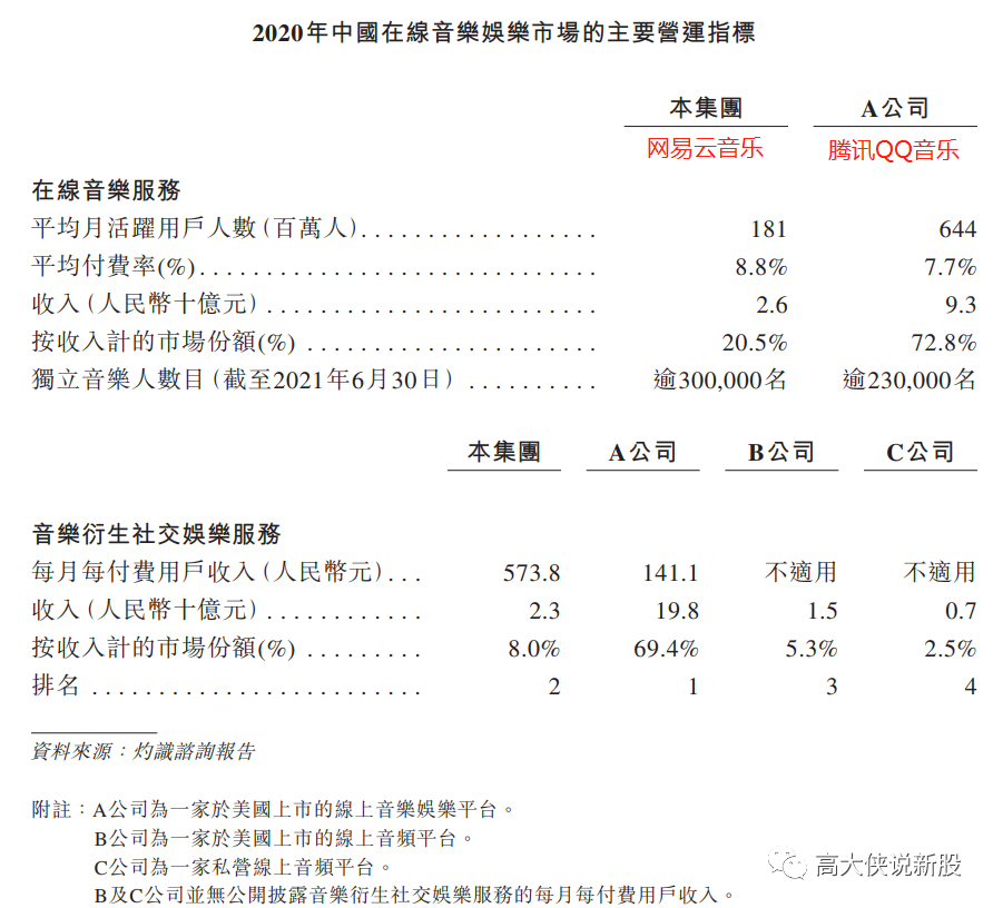从行业竞争上看,与网易云音乐直接对标竞争的就是已经在美股上市的腾讯QQ音乐,看看数据对比