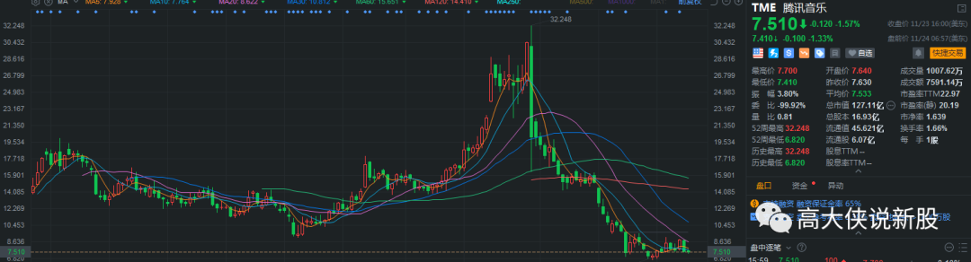 数据上,腾讯音乐基本上碾压网易云,无论从市占率,营收净利润还是活跃用户远超几倍,不是一个梯队的,目前互联网科技板块损失惨重,市场不买单,看看腾讯音乐,瘦死的骆驼比马大,要知道在今年3月份腾讯音乐的市值还在500亿美金,现在生生打了一个四折,在怎么分析基本面也抵不住市场的一耳光,目前腾讯音乐还在低迷中不断徘徊,网易云只怕是凶多吉少。