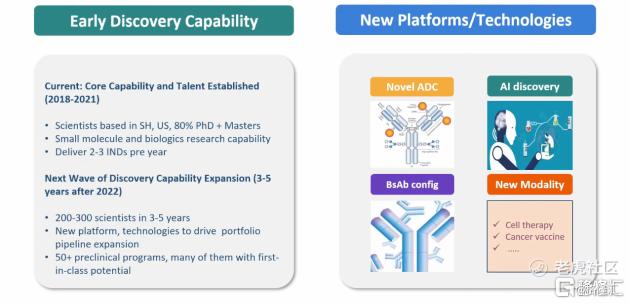 此外,在2022年后的3-5年,德琪计划将科学家团队扩充至200-300名,搭建创新科技平台为新药研发提供强大助力,开展20+临床前研究,其中近半数为First-in-class产品。