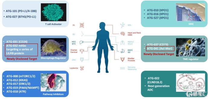 公司的众多临床前产品从技术和创新角度而言,均具备一定优势。此次大会既有6款自主研发药物基础上,披露2款全新自主研发药物,一个是靶向作用于一系列 LILRB 蛋白的ATG-041,未来随着巨噬细胞成为肿瘤免疫疗法的下一研发热点,其或成为该领域的领军者。