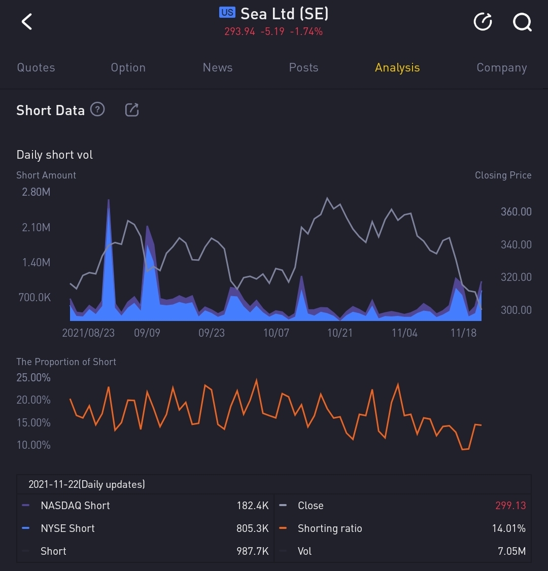 $Sea Ltd(SE)$Short amount was 400k+ yesterday, grew to 900k+ today.