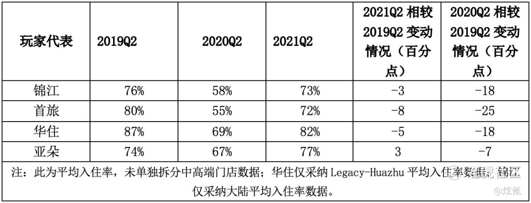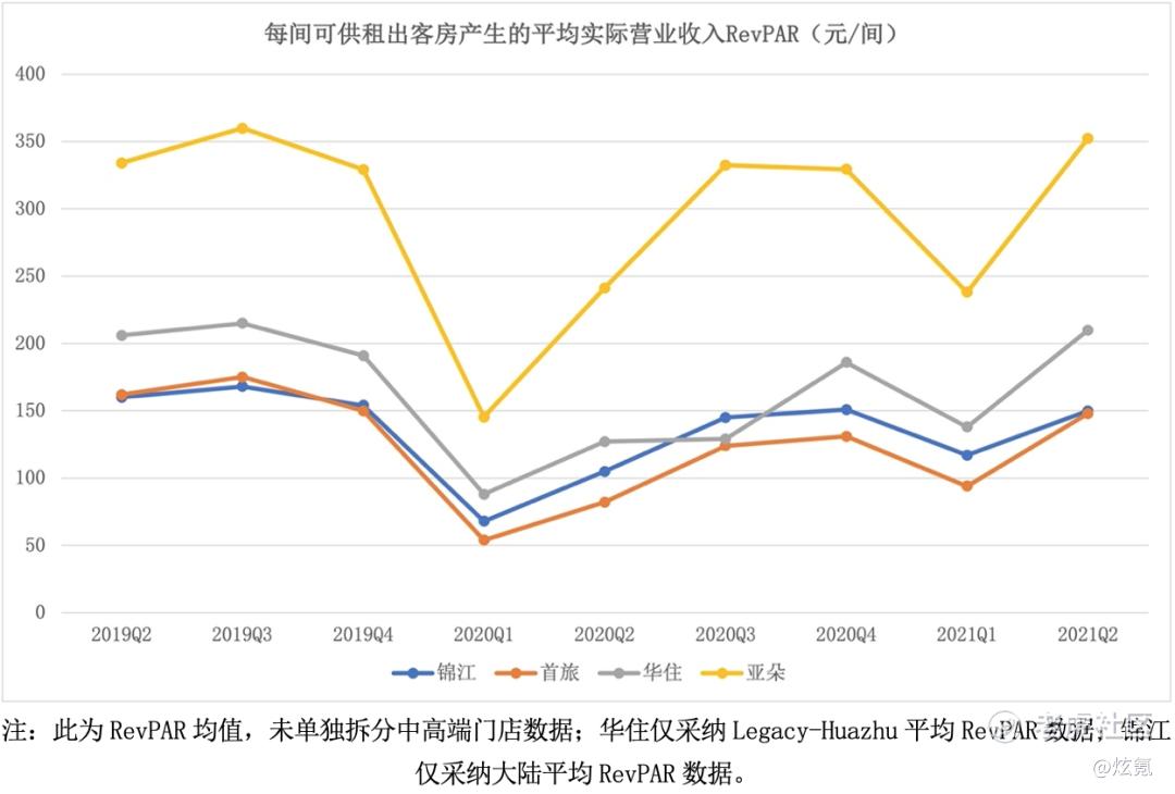 其实在疫情之前,经济型酒店入住率会相对高于中高端酒店。而截至2021年第二季度末,锦江旗下已开业酒店中经济型占比为50%;首旅旗下酒店经济型占比为45%,亚朵旗下没有经济型酒店。所以在入住率这一数据维度上,如果以“老眼光”来看,锦江、首旅应该是占据一定优势的。