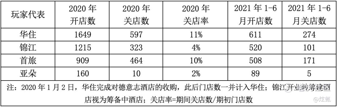 为此,我们梳理了华住、锦江、首旅、亚朵截至2019年底、截至2020年底、截至2021年6月底的门店数,及在此期间各家开店、闭店的情况。