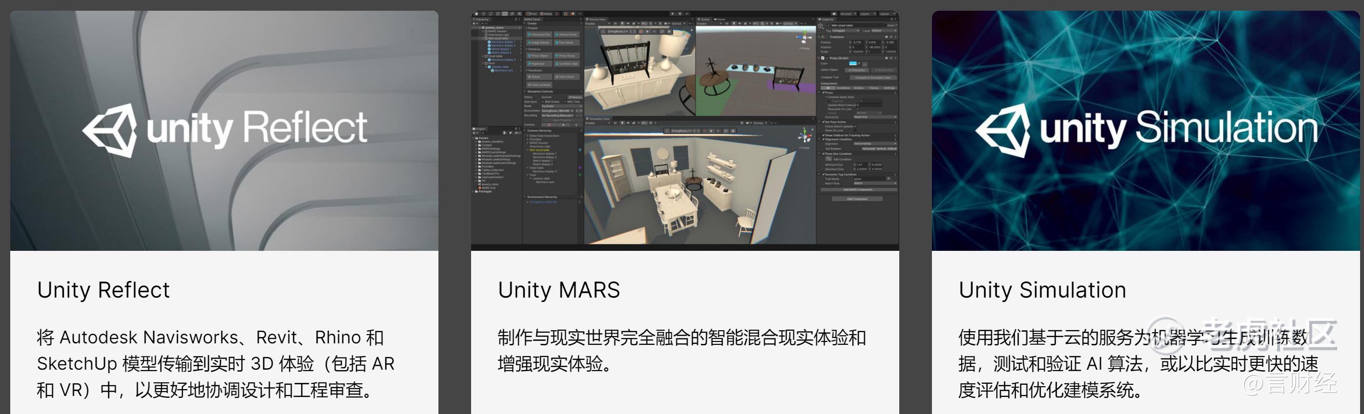 在建筑行业中,公司新的实时 BIM 产品 Unity Reflect 现已发布。只需一键,即可从多个 Autodesk Revit 模型创建针对 VR、AR 等技术的沉浸式交互体验。在 VR 中对建筑进行设计、工程或施工模拟,让客户无需接触实物便能体验真实的环境,不受物理边界限制进行训练,在一切成型之前通过团队迭代。曾经这只是未来的一个梦想,而现在凭借全球领先的实时开发平台 Unity,它已经成为现实。