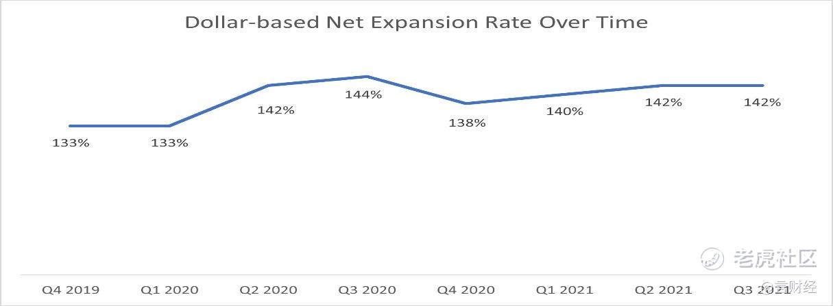 截至期末,公司以美元为基础的净扩张率计算为当期收入除以前期收入。前期收入是截至该前期结束时计量的过去 12 个月收入,包括在该过去 12 个月期间贡献收入的所有客户的收入。本期收入是截至本期结束时来自这些相同客户的过去 12 个月的收入。我们以美元为基础的净扩张率包括任何客户续约、扩张、收缩和流失的影响,但不包括当期新客户的收入。