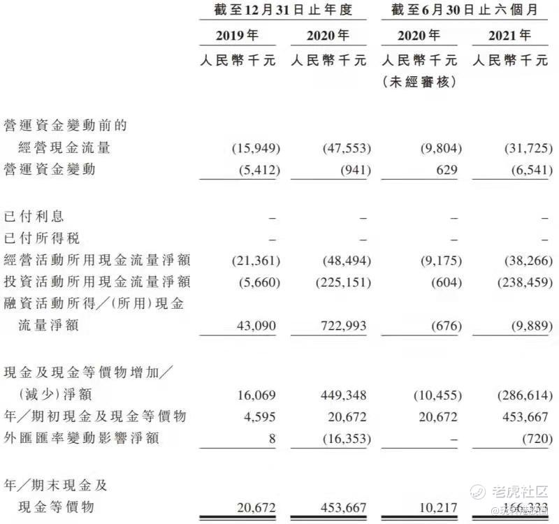 公司于2019年至2020年底以及2020年、2021年截至6月30日止六个月,经营活动所用现金净额分别为人民币2136.1万元、人民币4849.4万元、人民币917.5万元及人民币3826.6万元。