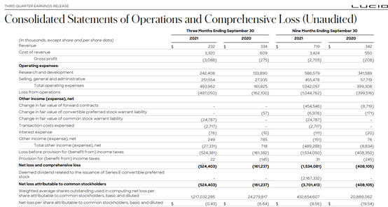根据财报数据显示,Lucid在第三季度,收入23.2万美元,运营亏损4.971亿美元。跟同期相比,今年的工程、研发费用增长了72%, 由于销售和服务网络的搭建,SG&A费用也增加了4亿美元。虽然烧钱,但也有钱烧。第三季度获得了44亿美元的投资,到了季度末,账面上的现金还有48亿美元。