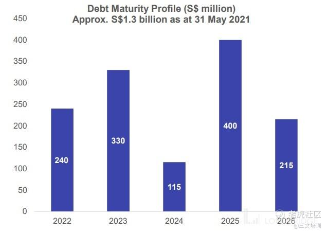 当然,我们也还是需要看公司的债务水平的。目前 新加坡报业地产 手头上的负债大约为 13 亿新币左右,其中加权平均债务期限为 2.9 年,其中有 2.4 亿将会在 2022 年到期、3.3 亿在 2023 年到期,因此公司是需要进行再融资的。不过,公司的融资成本也不过在 1.86% 而已,相对来说是非常便宜的。
