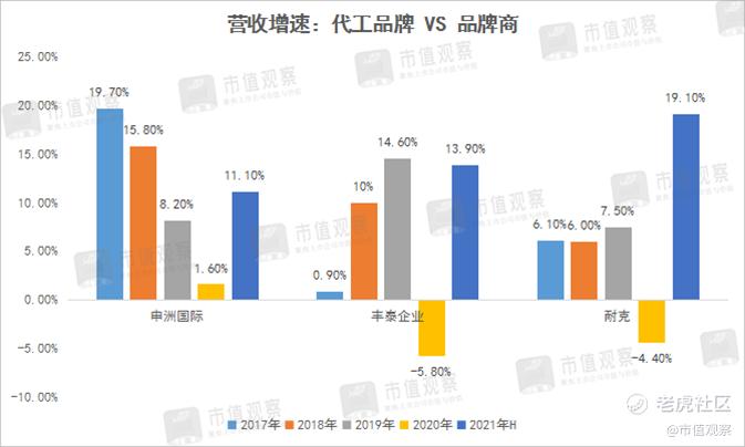 其次是业绩增速。下图我们梳理了四家企业2016年-2020年(其中华利集团自2017年开始)期间的营收与归母净利复合增速(CAGR),可以明显看出,华利集团与申洲国际两家表现亮眼,丰泰企业出现增收不增利的现象,裕元集团则呈衰退趋势。