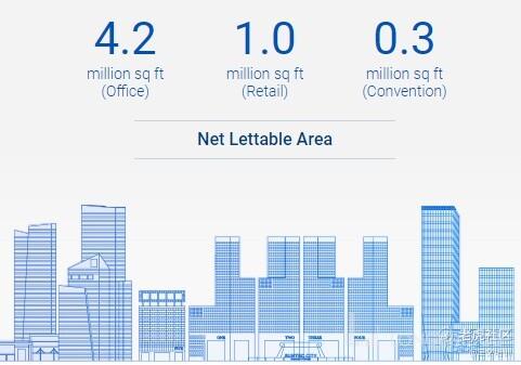 写字楼出租空间为 420 万平方公尺、零售面积为 100 万平方公尺余下 30 万空间为社区空间。