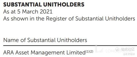 大股东为香港富豪李嘉诚旗下的 ARA 资产管理,该资产管理价值高达 950 亿美元,横跨 28 个国家。
