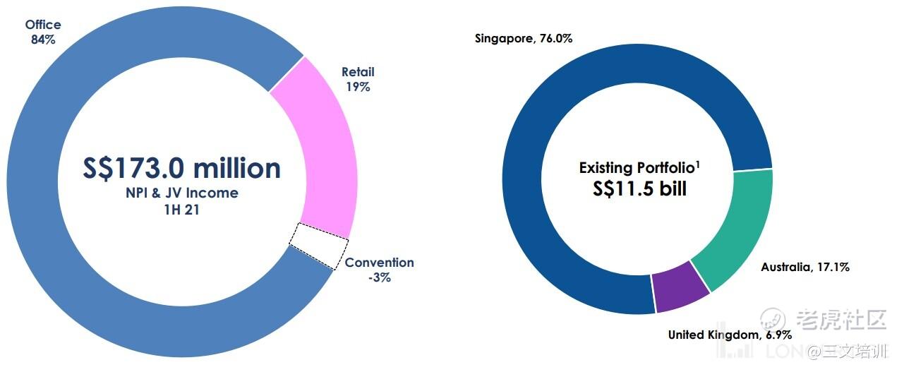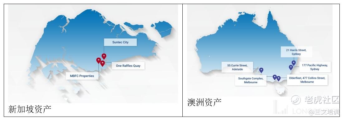 2004 年 12 月,新达产业信托在新交所上市,也是老牌公司之一。逾 8 成的资产收入来自写字楼。资产分别新加坡(76%)、澳大利亚(17.1%)及英国(6.9%)三地。